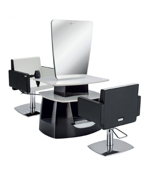 Зеркало парикмахерское "STYLO 2P" двустороннее - зеркало с артикулом С-60002502 оснащено тумбой с ламинированными столешницей и полкой, а также металлическими подставками под ноги. Каркас тумбы выполнен в пластике. Крепление к стене.