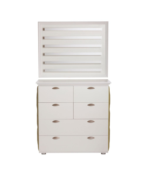 Навесная полка выполнена на едином основании из ламинированного ДСП с отделкой по периметру декоративным молдингом. На основании установлены шесть полочек с ограничителем (бортиком) из матового алюминия.