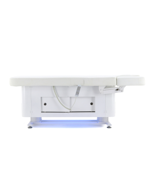 Широкие и удобные подлокотники, интегрированные в секцию спины, имеют регулировку по высоте. Они помогают удобно расположить руки пациента при проведении массажа спины, снять напряжение в предплечьях и зоне лопаток. Наличие декоративной подсветки в нижней части основания создаёт приятную, расслабляющую обстановку.