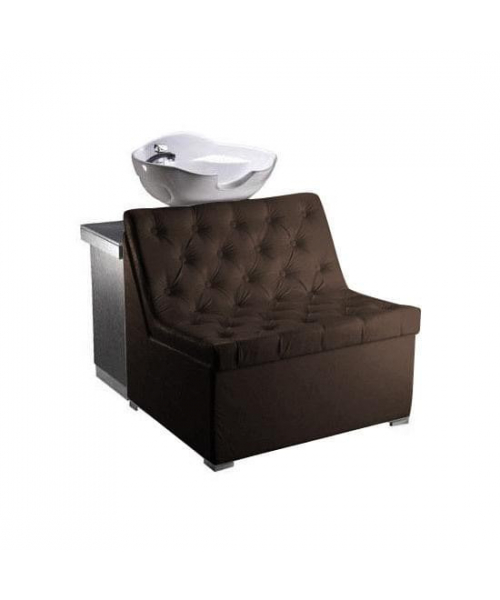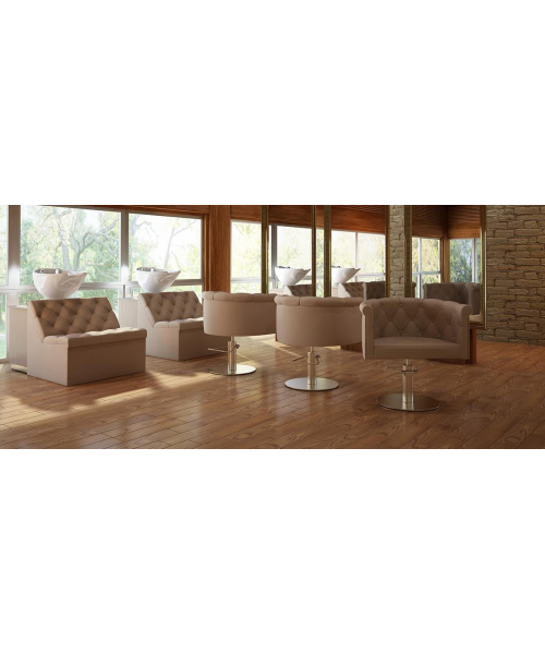 Широкое кресло очень эффектно выглядит и больше похоже на небольшой диванчик. Белоснежная мойка отлично сочетается с контрастной по цвету полкой, на которой мастер может удобно разместить полотенца и другие предметы.Качественные материалы и обивка позволяют мастеру не беспокоится о возможном загрязнении изделия. Все материалы легко очищаются при помощи обычных средств.